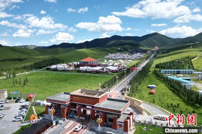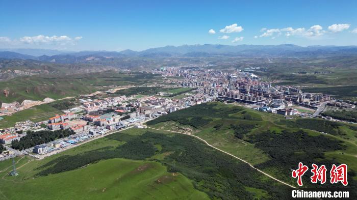 7月31日,甘肅省甘南藏族自治州合作市的當(dāng)周草原風(fēng)景如畫(huà)。當(dāng)周草原風(fēng)景區(qū)內(nèi)綠草連天,高山、森林、草原和亭臺(tái)帳篷融為一體,以其涼爽的氣候和獨(dú)特的旅游資源成為游客青睞的避暑旅游勝地。圖為被稱為“草原中的城市”的合作市。(無(wú)人機(jī)照片)中新社記者 九美旦增 攝