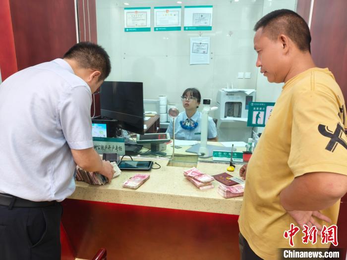 鄧先生帶著鈔票來到銀行網(wǎng)點(diǎn)。康定大渡河支行 供圖