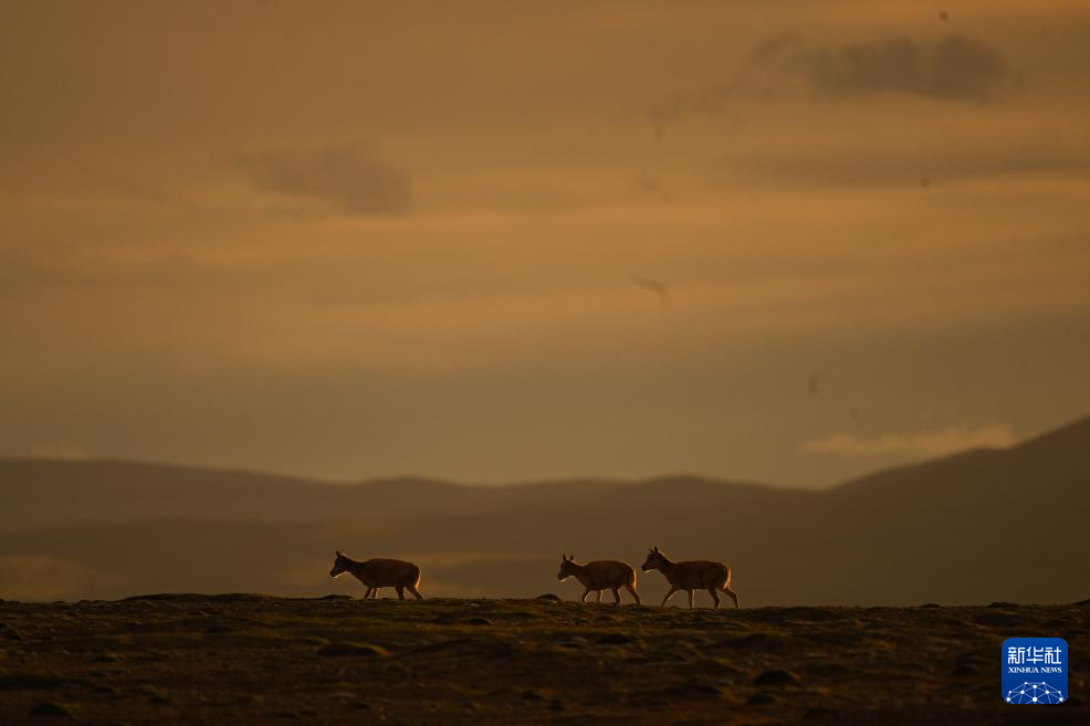 7月7日,在可可西里卓乃湖區(qū)域,幾只藏羚羊在活動。新華社記者 張龍 攝