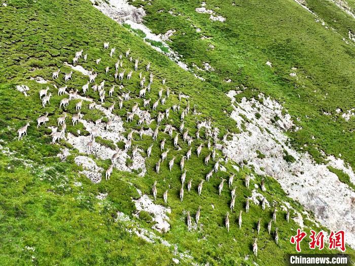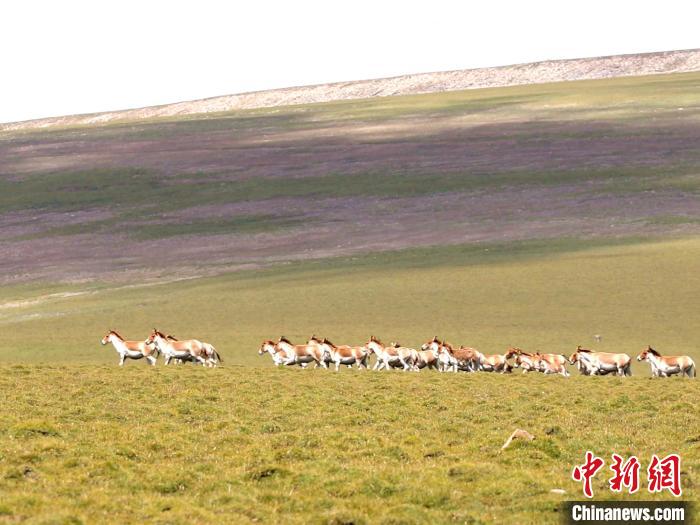 圖為成群藏野驢在草原上駐足。才新木加 攝