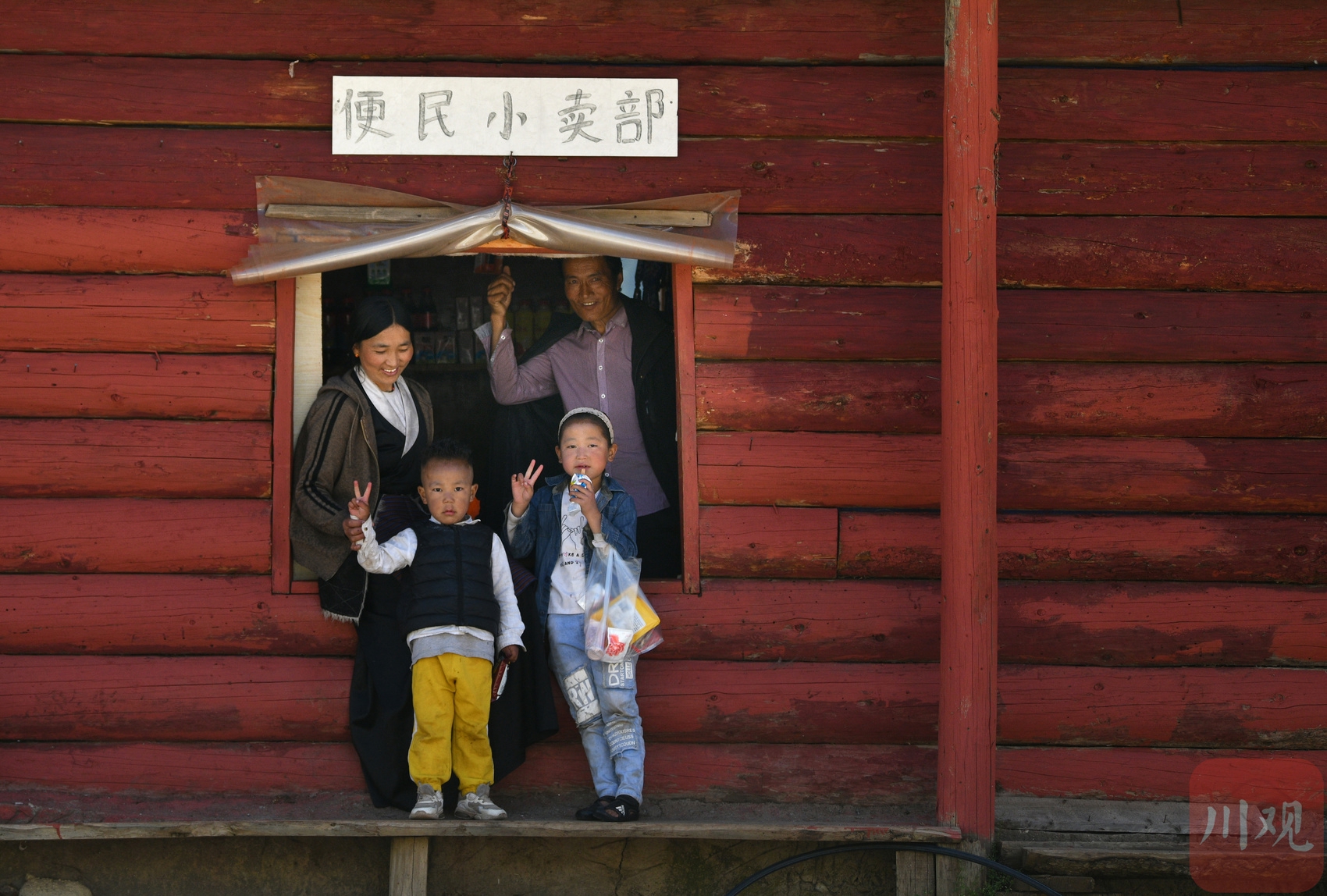 拉姆(左)在村里沖仁真開的小賣部為兩個(gè)娃買零食。