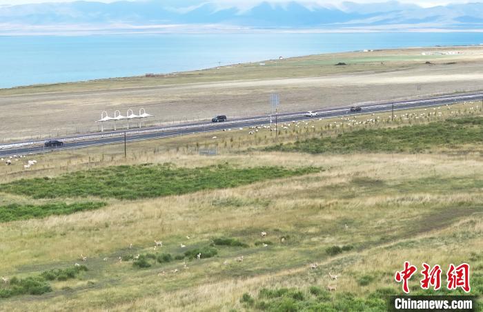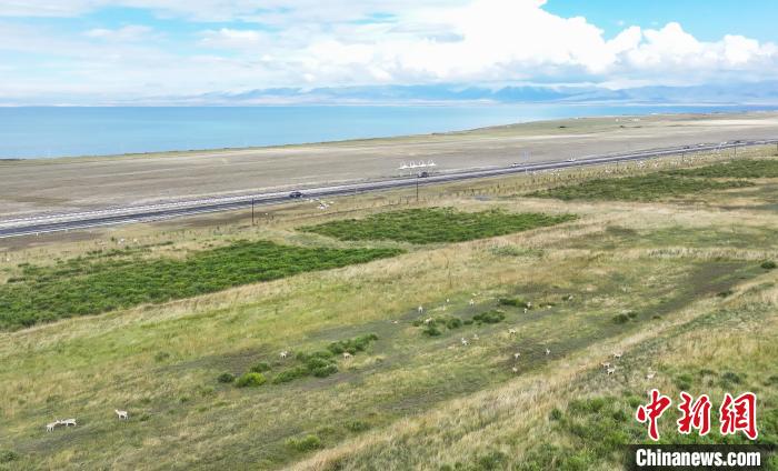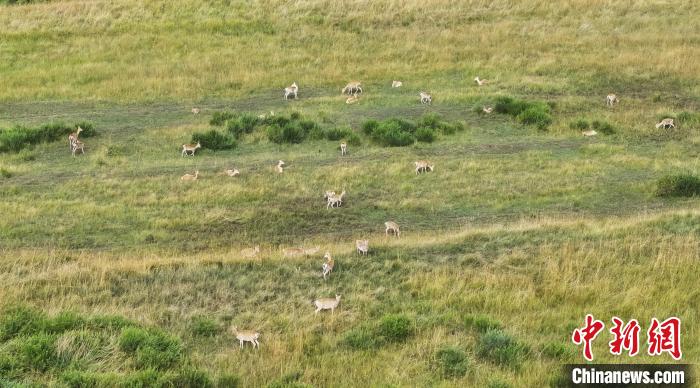 圖為普氏原羚在青海湖畔棲息覓食,悠閑愜意。(無人機(jī)照片)中新社記者 馬銘言 攝