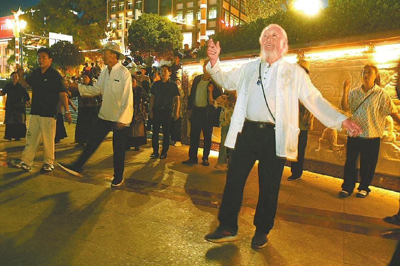 8月下旬,四川日報全媒體“向云端——尋路川藏線上的中國”采訪組來到巴塘縣城時,正是傍晚,縣政府旁邊的中山廣場上胡琴聲悠揚,當?shù)厝罕妵μ鹆税吞联氂械南易游?,一些外地游客也饒有興致地加入。