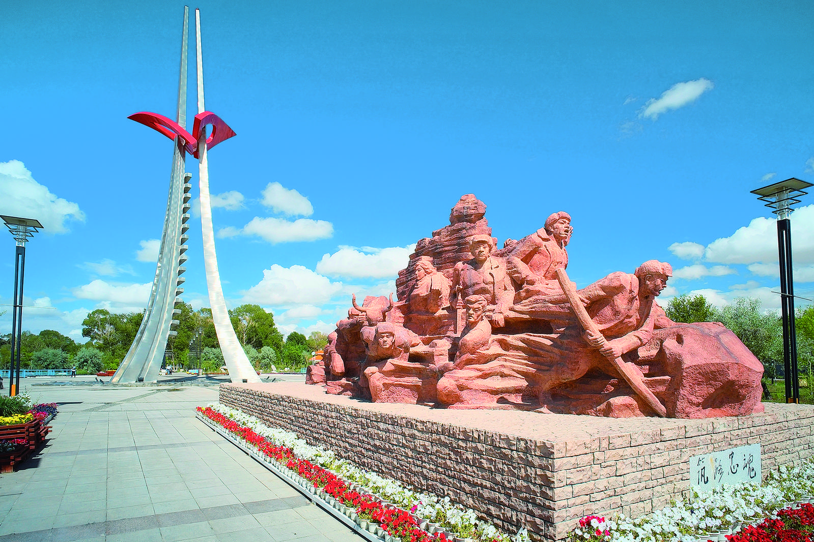 筑路忠魂雕塑。