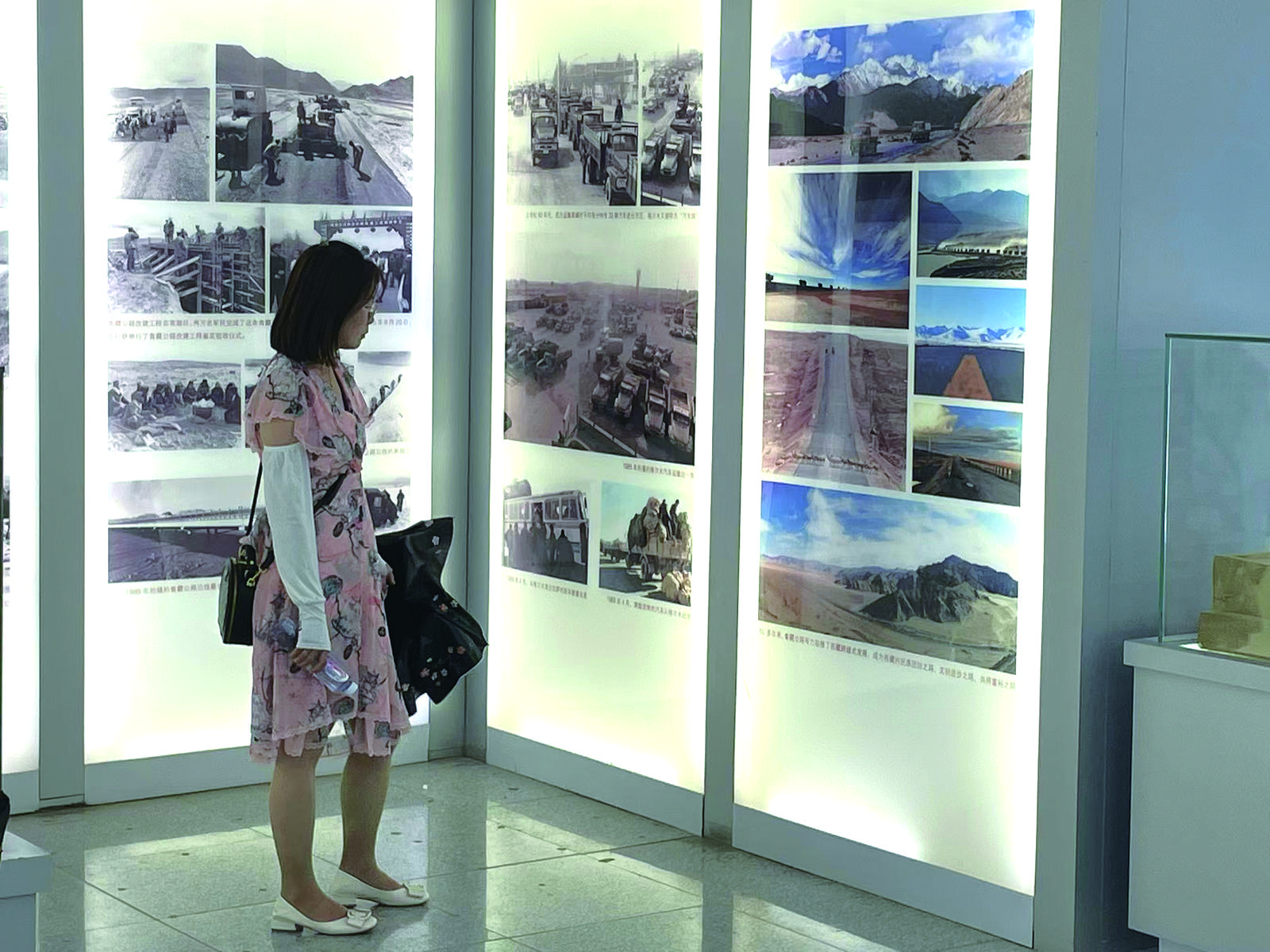 第一展廳里,那豐富的資料如同一幅幅畫卷,圍繞著“一位將軍、一條公路、一個奇跡、一段歷史、一座新城、一種精神”徐徐展開,每一張圖片、每一段文字都在講述著格爾木發(fā)展歷程中那些動人心弦的故事。