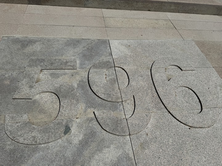 原子城紀(jì)念館地上“596”字樣,這是第一個(gè)試驗(yàn)性原子彈產(chǎn)品代號(hào),對(duì)應(yīng)蘇聯(lián)毀約的日子,即1959年6月。新華社 潘旭 攝