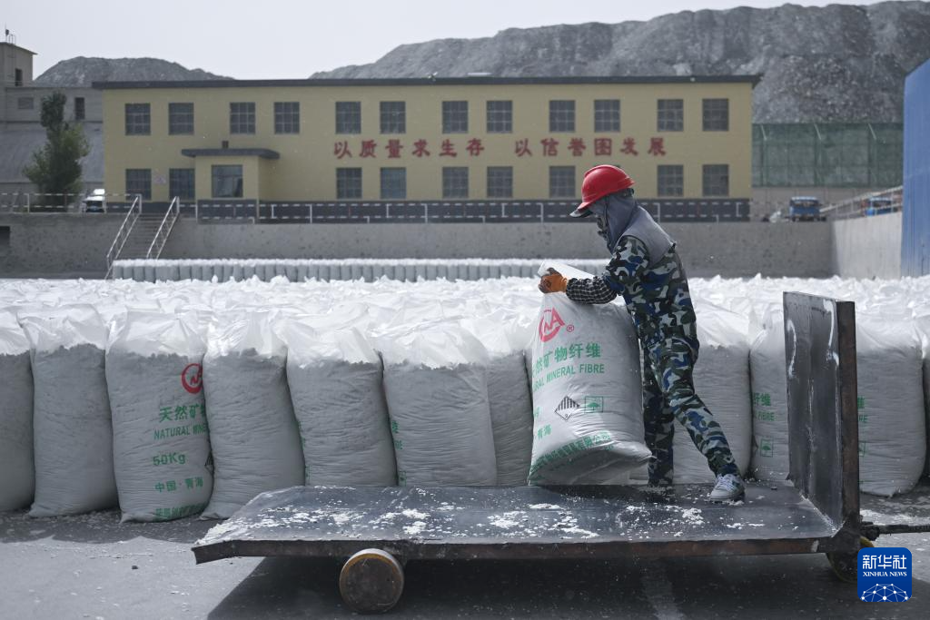 8月22日,在青海省海西蒙古族藏族自治州茫崖鎮(zhèn),青海創(chuàng)安公司工人在搬運石棉產(chǎn)品。新華社記者 張龍 攝