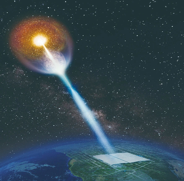 “拉索”探測伽馬射線暴(GRB 221009A)藝術(shù)圖。中國科學(xué)院高能物理所供圖