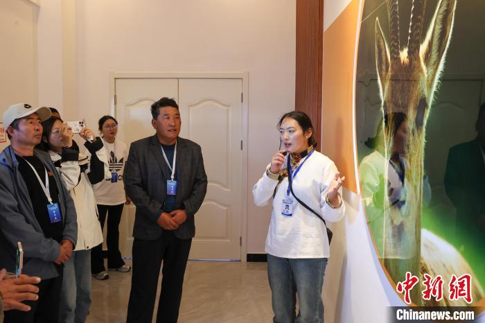 9月26日,在青海湖北岸的青海省海北藏族自治州剛察縣哈爾蓋普氏原羚科普研學(xué)教育基地內(nèi),講解員為參觀人員講解普氏原羚生活習(xí)性。目前,中國國家一級重點保護野生動物普氏原羚野外種群數(shù)量從監(jiān)測之初不足300只恢復(fù)至3000余只。普氏原羚現(xiàn)僅分布于青海湖環(huán)湖區(qū)域,其中,以剛察縣哈爾蓋河流域最為集中。中新社記者 薛蒂 攝