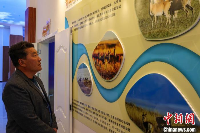 9月26日,在青海湖北岸的青海省海北藏族自治州剛察縣哈爾蓋普氏原羚科普研學(xué)教育基地內(nèi),參觀人員閱讀了解普氏原羚相關(guān)知識。目前,中國國家一級重點保護野生動物普氏原羚野外種群數(shù)量從監(jiān)測之初不足300只恢復(fù)至3000余只。普氏原羚現(xiàn)僅分布于青海湖環(huán)湖區(qū)域,其中,以剛察縣哈爾蓋河流域最為集中。中新社記者 薛蒂 攝
