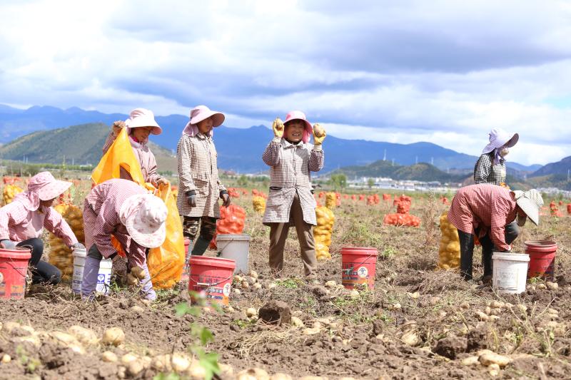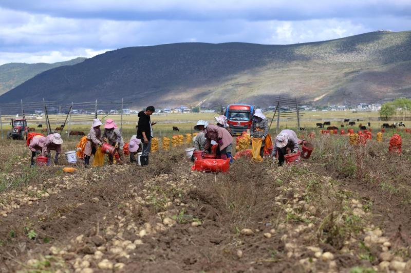 10月13日,記者在位于香格里拉市建塘鎮(zhèn)尼史村的香格里拉市滇茂農(nóng)業(yè)科技有限公司馬鈴薯種薯培育基地看到,百余畝馬鈴薯種薯喜獲豐收,工人們正忙著將機(jī)械采挖出的種薯分揀、裝袋、上車,一派繁忙景象。