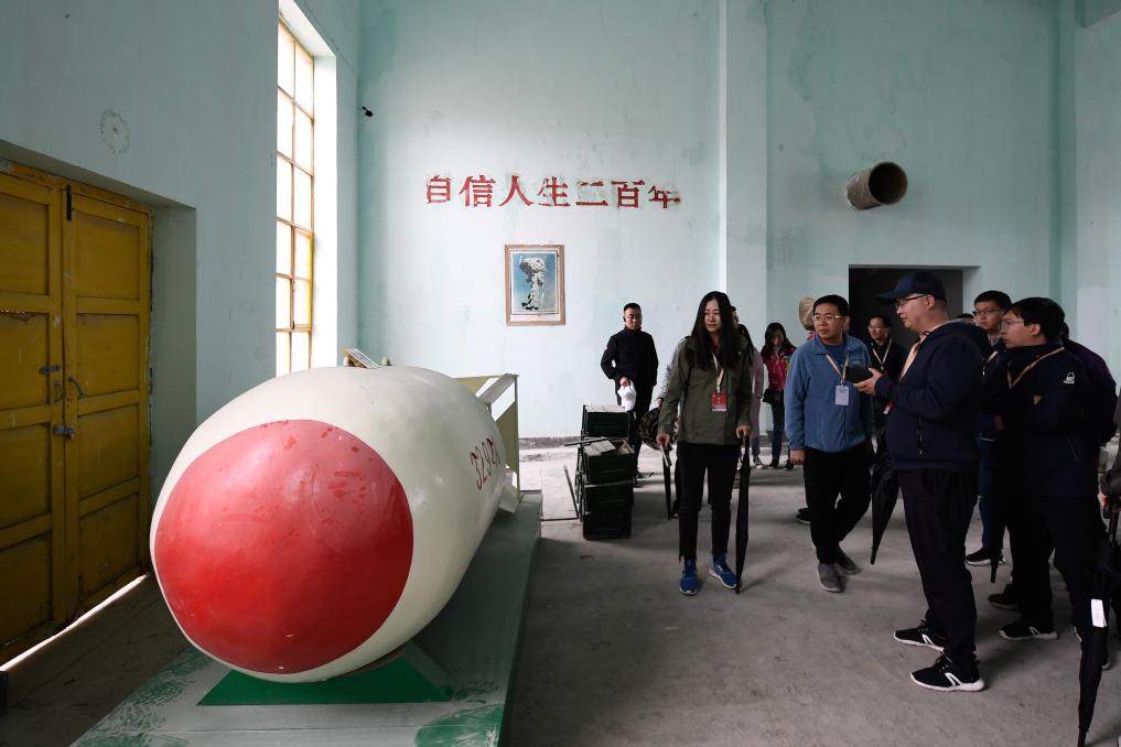 青海大學(xué)“三江源生態(tài)”一流學(xué)科博士團(tuán)成員在221廠舊址參觀(資料照片)。新華社記者 張龍 攝