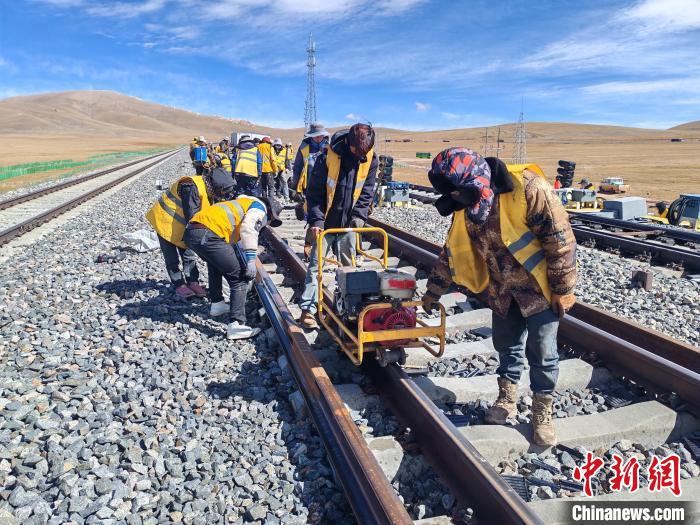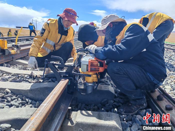 由中國(guó)鐵路青藏集團(tuán)有限公司(以下簡(jiǎn)稱(chēng)青藏集團(tuán)公司)格爾木工務(wù)段重點(diǎn)維修車(chē)間負(fù)責(zé)的開(kāi)心嶺站站場(chǎng)緩沖區(qū)換軌改造施工正在稀薄的氧氣中進(jìn)行。