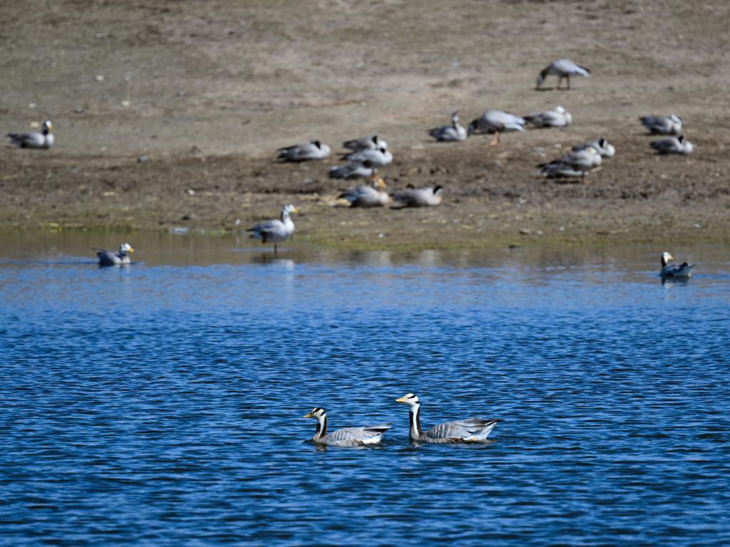 這是2024年4月11日在青海湖拍攝的斑頭雁。新華社記者 張龍 攝