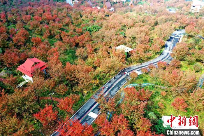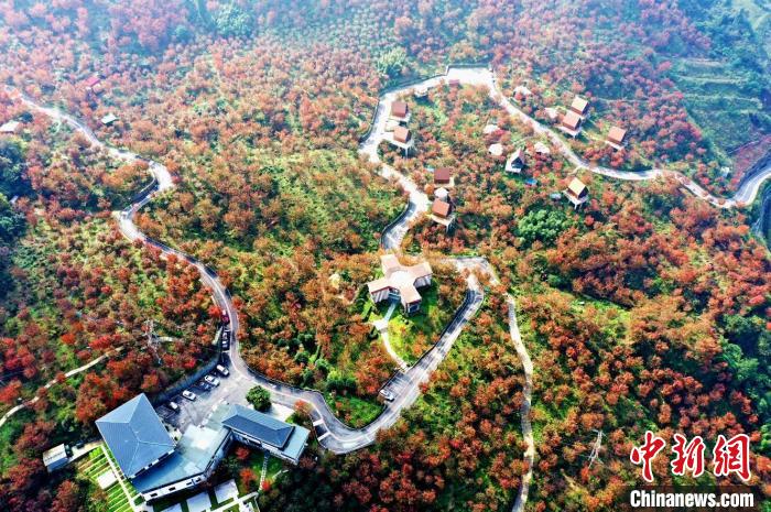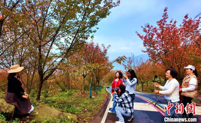 深秋時(shí)節(jié),位于四川阿壩州汶川縣漩口鎮(zhèn)趙公村的400余畝櫻花樹葉迎來(lái)最佳的觀賞期。放眼望去,五彩斑斕的櫻花樹葉紅遍山野,如同一幅秋日唯美畫卷。圖為滿山櫻花樹紅葉惹人醉。 伍排勇 攝