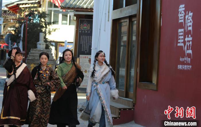 12月23日,游客身著藏族服裝游覽香格里拉市獨(dú)克宗古城。黃興鴻 攝