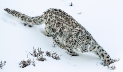 “20多年前,親眼見到雪豹的人屈指可數(shù),很多專門研究雪豹的科研工作者窮其一生,都未能一睹‘雪山之王’的風(fēng)采。但在今天的雪豹分布區(qū),很多牧民都見過并拍到過雪豹?!眲⒀琢终f(shuō),他至少五次與雪豹不期而遇,而最難忘的還是第一次——2012年3月,他在三江源進(jìn)行雪豹調(diào)查,“剛下過雪,我們和它只隔著一條小河,但它絲毫沒有理會(huì)我們,非常優(yōu)雅地漫步于白雪皚皚的山坡”。