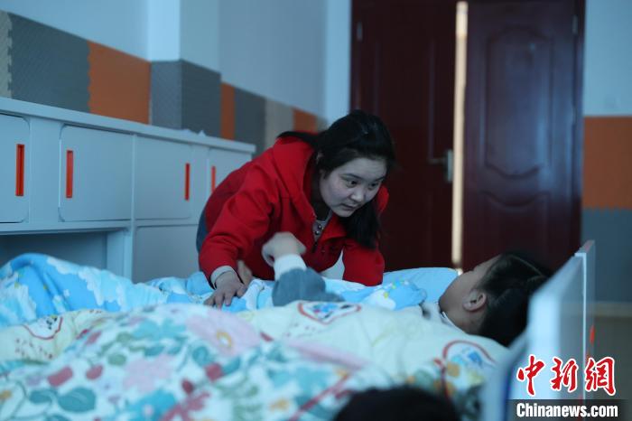 3月31日,青海西寧,特教老師開毛加午休時(shí)哄孩子睡覺。青海省西寧市星光特殊兒童服務(wù)中心現(xiàn)有四十多名特教老師,他們用愛點(diǎn)亮“星星的孩子”內(nèi)心世界,幫助這些孩子更好地融入學(xué)校生活、走向社會。張忠蘋 攝
