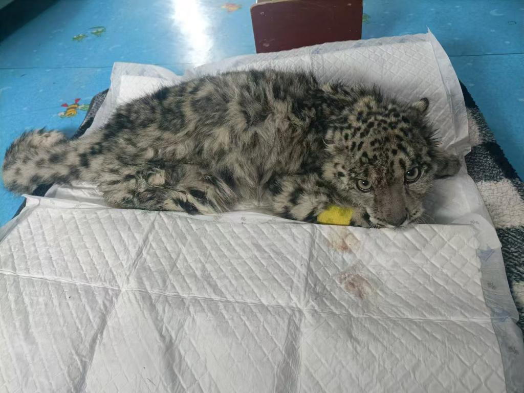 經過初步檢查,這只雪豹幼崽僅6個月大,體長74厘米、重9.7公斤,遠低于同齡正常水平。救護中心主任何順福介紹,經過研判,這只雪豹幼崽可能遭遇高空墜跌,導致受傷喪失行動能力,進而發(fā)生長期饑餓、感染,已處于瀕死狀態(tài)。