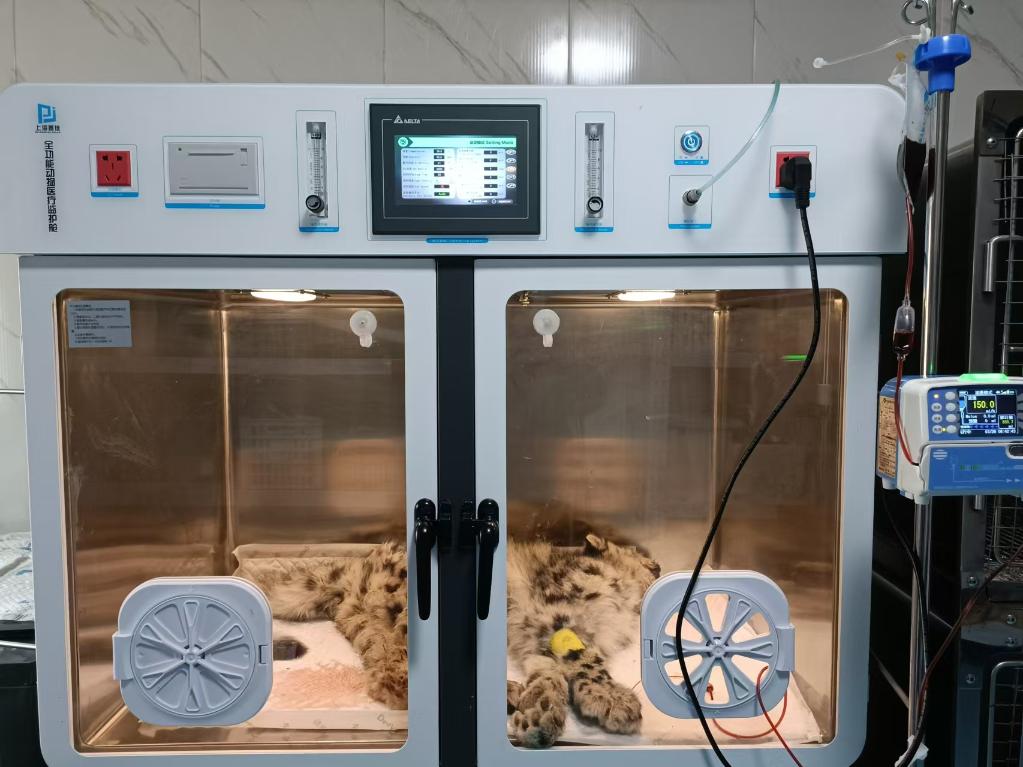 3月5日,“凌小蟄”在恒溫氧艙中接受治療。青海野生動物救護繁育中心供圖