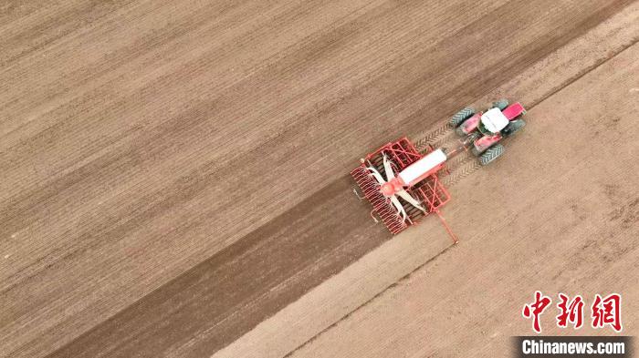 4月21日,青海省海南藏族自治州貴南縣貴南牧場(chǎng),大型機(jī)械正在播種青稞。該牧場(chǎng)今年種植青稞品種昆侖14號(hào)共5.1萬(wàn)畝,創(chuàng)全省種植青稞規(guī)模之最?!?/p>
