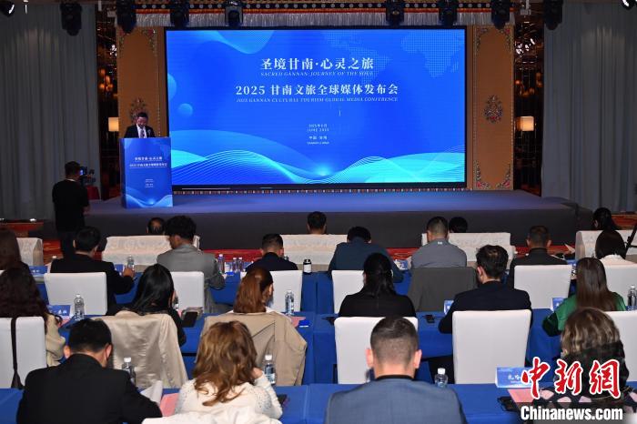 6月10日,甘肅甘南藏族自治州合作市,2025甘南文旅全球媒體發(fā)布會現(xiàn)場。中新社記者 九美旦增 攝