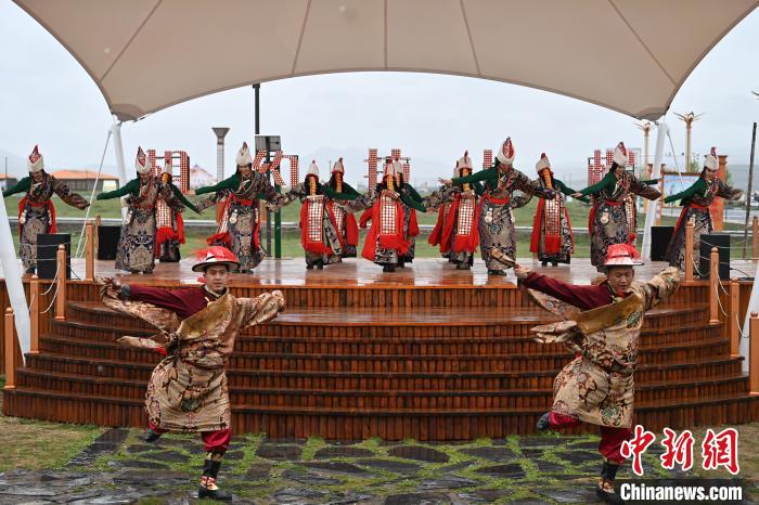 6月9日,圖為夏河當?shù)夭刈甯栉璞硌莠F(xiàn)場。九美旦增 攝