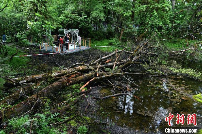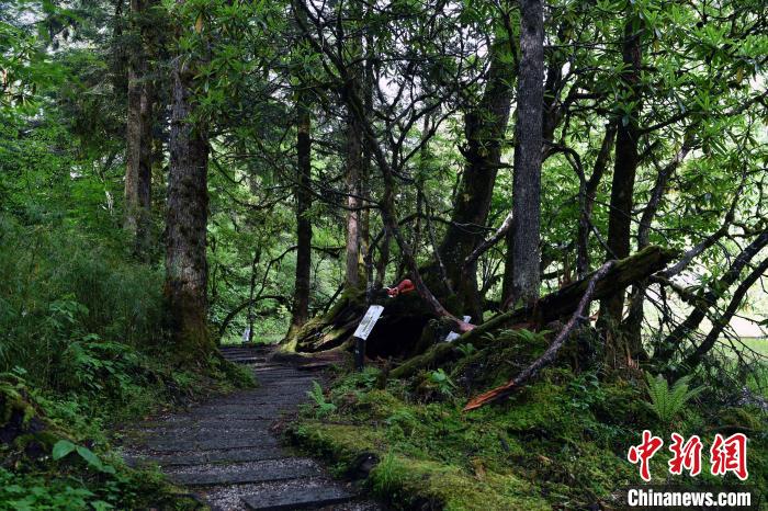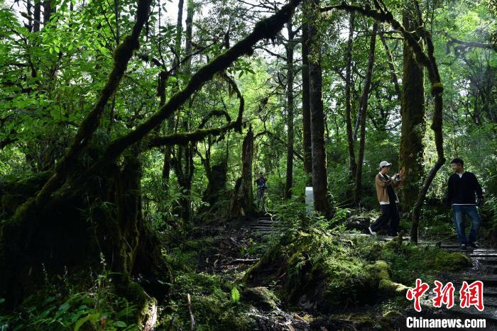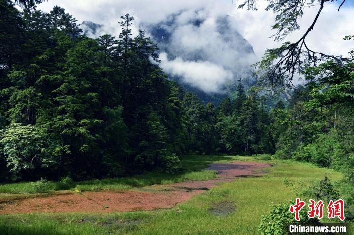 6月18日,記者走進位于四川省甘孜藏族自治州的海螺溝景區(qū)草海子探訪。草海子是冰川雨林步游長廊的入口,處于山地暖溫帶針闊葉混交林帶,是一處末次冰期古冰磧湖,湖岸是一片很大的原始森林,生長著各種珍稀植物,幽靜神秘。叢林因季相變化而五彩繽紛,又被稱為“五花林”。