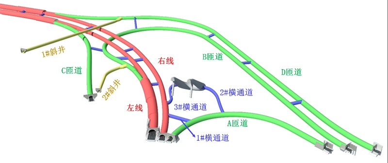 為了實(shí)現(xiàn)交通轉(zhuǎn)換,這座“T”形樞紐包含了主線特長(zhǎng)隧道1座,其中左線長(zhǎng)度3025米,右線長(zhǎng)度3050米;4座匝道隧道,最長(zhǎng)的匝道超過(guò)1400米。