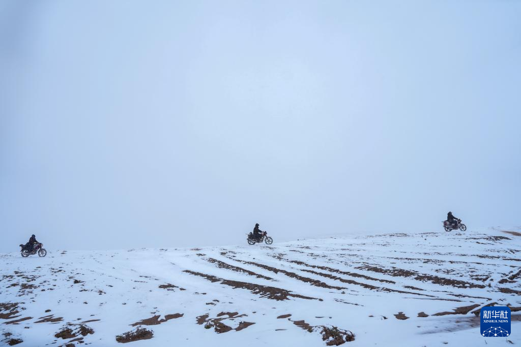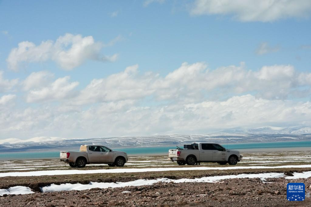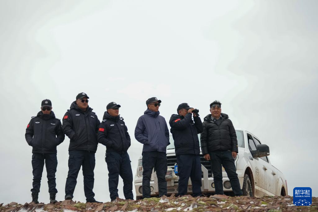 巡山隊員在可可西里卓乃湖附近巡護(7月3日攝)。新華社記者 杜笑微 攝