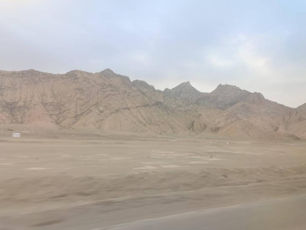 半個小時之后,風(fēng)勢在幾滴雨點的打擊下,漸漸緩和下來。當(dāng)沙幕隱去,露出被磨洗過的藍(lán)天時,我們都長舒了一口氣。擋風(fēng)玻璃上的兩側(cè),裹了厚厚一層泥巴。遠(yuǎn)處的山峰頂上,白雪在太陽的余暉下,染成了金黃。