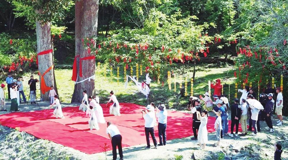 在“簪花之路”上的大峪鎮(zhèn)香杭村,三棵需兩人合抱的白楊樹因“達(dá)瑪女神化樹守愛(ài)”的動(dòng)人傳說(shuō)成了網(wǎng)紅打卡點(diǎn)。周邊配套建設(shè)的觀景臺(tái)、故事墻、休憩亭,讓游客既能賞古樹風(fēng)姿,又能沉浸式品讀那段浪漫的愛(ài)情神話。