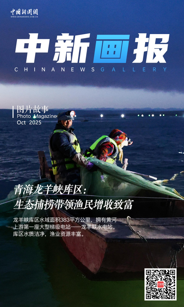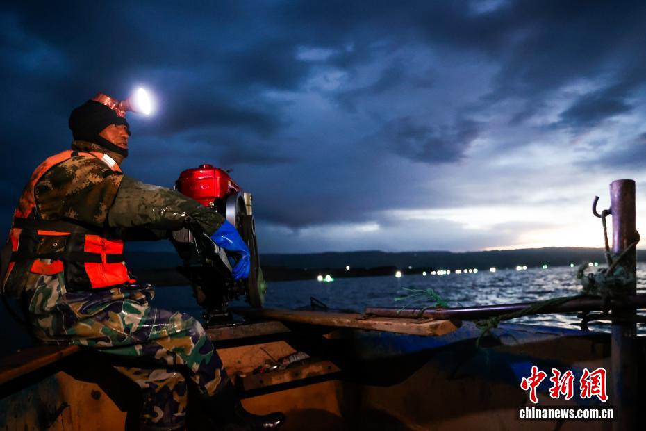 10月14日清晨,青海省海南藏族自治州的龍羊峽庫區(qū),漁民借用燈光誘捕肉質(zhì)細(xì)嫩的池沼公魚。龍羊峽庫區(qū)水域面積383平方公里,擁有黃河上游第一座大型梯級(jí)電站——龍羊峽水電站。庫區(qū)水質(zhì)潔凈,漁業(yè)資源豐富,每年8月20日至11月20日是池沼公魚捕撈期,僅這一項(xiàng)收入就能給每戶漁民家庭帶來近10萬元(人民幣)的收入。