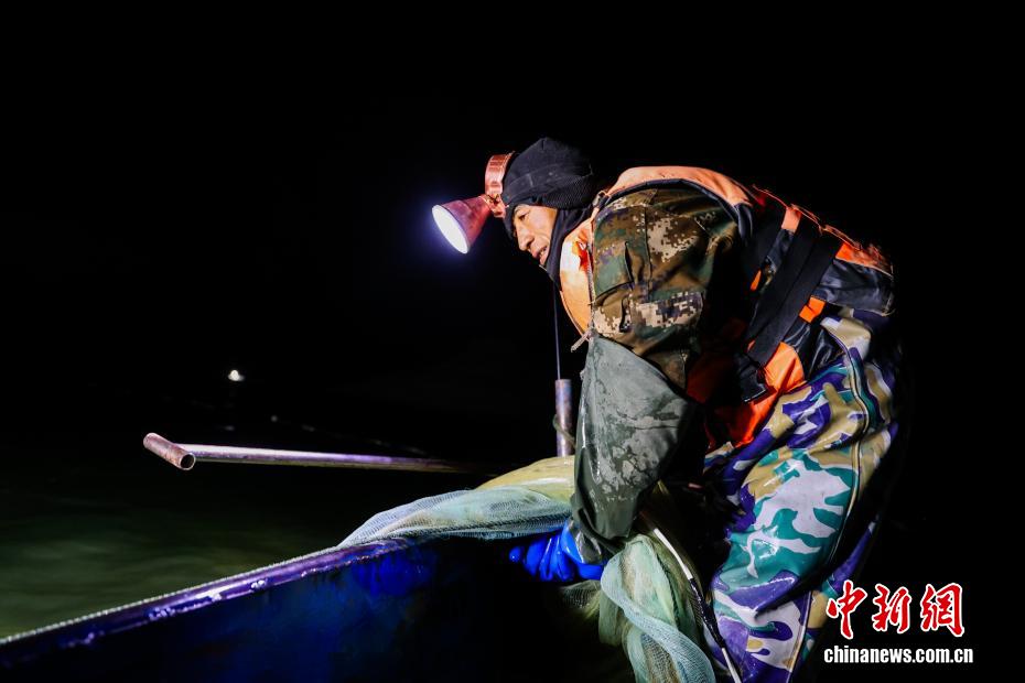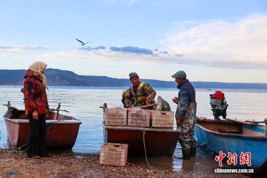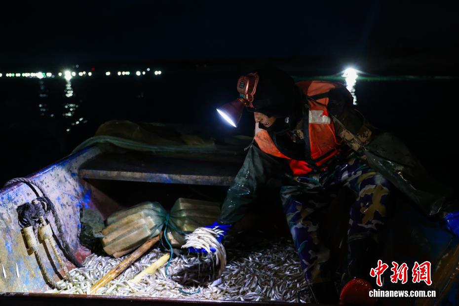 圖為漁民清點(diǎn)捕撈上岸的池沼公魚數(shù)量。中新社記者 薛蒂 攝