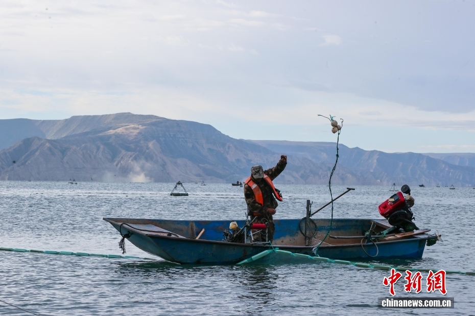 圖為漁民在湖面上起網(wǎng)捕魚。中新社記者 薛蒂 攝
