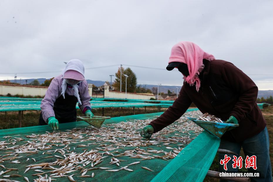 圖為漁民晾曬捕獲的池沼公魚。中新社記者 薛蒂 攝