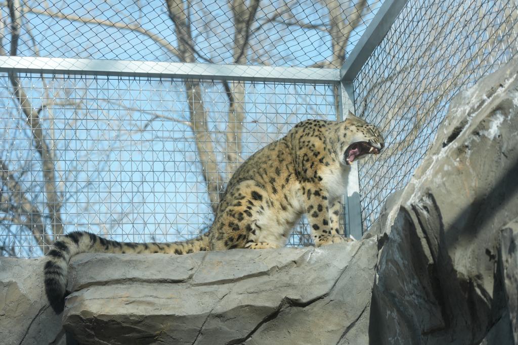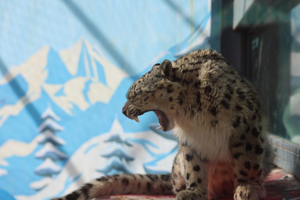 2025年3月被救護(hù)的雪豹“凌小蟄”在雪豹館內(nèi)嘶吼。
