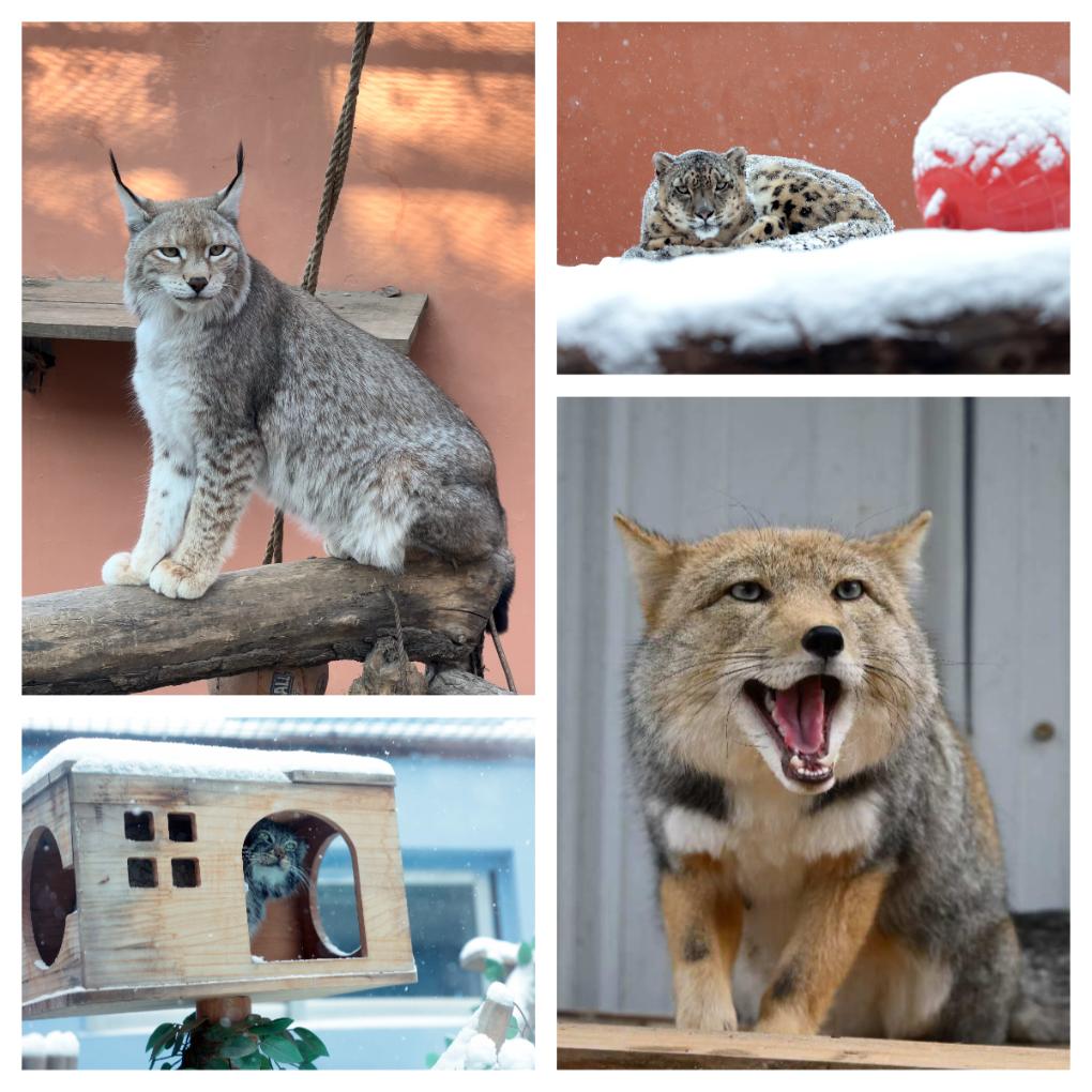 這是被網(wǎng)友戲稱為動物園“F4”(猞猁、雪豹、兔猻、藏狐)照片。(拼版照片)