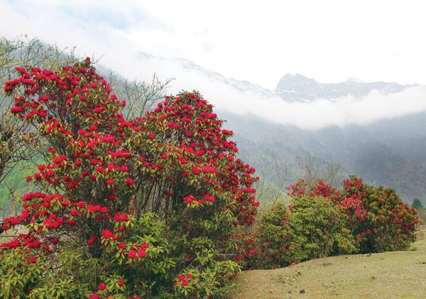 據(jù)了解,在勒布溝景區(qū)內(nèi),杜鵑花開放共分為三個波次。每年3月上旬開始,海拔2400米左右的勒鄉(xiāng)(勒門巴民族鄉(xiāng))的杜鵑花便陸續(xù)開放;到了4、5月份,海拔2800米左右的麻瑪鄉(xiāng)(麻瑪門巴民族鄉(xiāng))的杜鵑花大規(guī)模開放;到了6月份,波拉山口的百花灘上,大片的杜鵑花覆蓋住一面山坡,景象甚為壯觀,通常網(wǎng)絡(luò)上流傳的關(guān)于勒布溝成片的杜鵑花多取景于此地。
