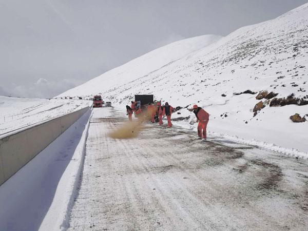 3月20日,記者從自治區(qū)公路局了解到,受低氣溫、強降雪影響,目前,國道318線K4166+000至K4203+000色季拉山段,K4378+000至K4492+000米拉山段路面積雪結(jié)冰較往年嚴(yán)重,局部路段積雪厚度達(dá)40cm以上。為確保公路安全暢通,林芝公路分局立即啟動搶險保通應(yīng)急預(yù)案,組織全體養(yǎng)護職工上路開展除雪除冰保通工作。針對彎道、陡坡等重點路段,加大機械和養(yǎng)護工人的投入力度,加快恢復(fù)道路車輛通行。由于高寒缺氧、交通不便,養(yǎng)護職工時常自備干糧充饑。冰雪融化后,養(yǎng)護工人還要對易結(jié)冰路段加大巡查力度,發(fā)現(xiàn)結(jié)冰路段立即按要求設(shè)置施工作業(yè)標(biāo)志并進行打冰作業(yè),及時消除安全隱患,保證行車安全。
