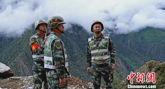 圖為8月1日,駐藏武警某部交通第三支隊(duì)養(yǎng)護(hù)五大隊(duì)的官兵在研究搶通方式?!罾^明 攝