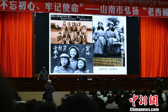 “這張照片拍的是十八軍進(jìn)藏女兵在修筑川藏公路時的合影,她們手掌向前,相互比較誰手上磨出來的繭子更多……”9月17日,原中國人民解放軍第十八軍宣傳部部長夏川之子蘆繼兵,在西藏山南市向當(dāng)?shù)攸h員干部及民眾講述十八軍進(jìn)藏故事,弘揚“老西藏精神”。