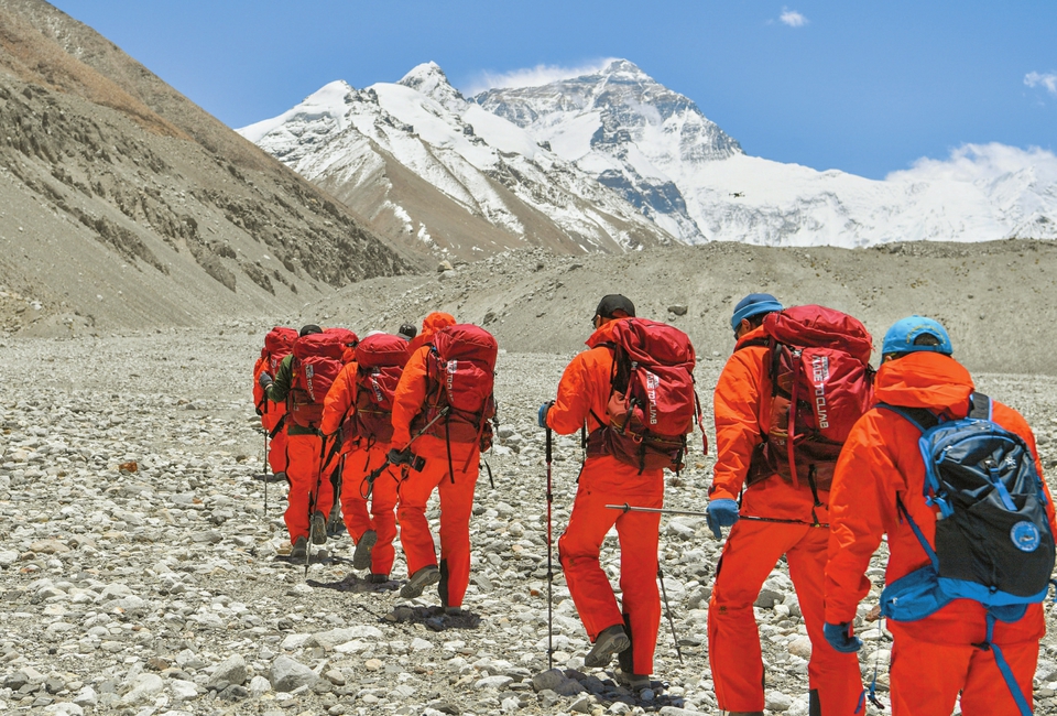 5月16日,2020珠峰高程測(cè)量登山隊(duì)從珠峰大本營(yíng)出發(fā)。新華社發(fā)
