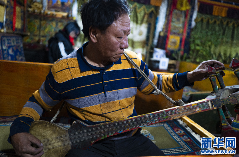 “牛頭旅館”老板多吉在旅館里給游客彈六弦琴(5月17日攝)。新華社記者 普布扎西 攝