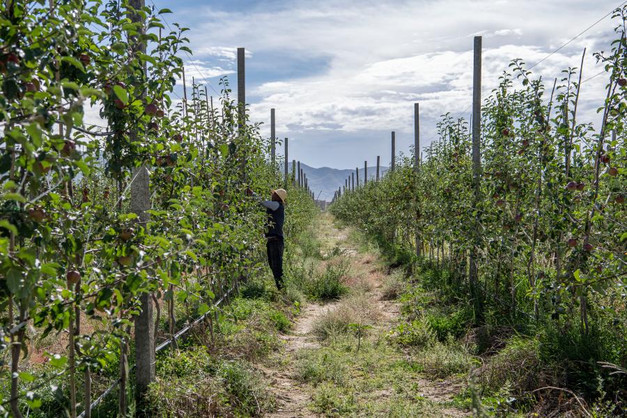 山南市貢嘎縣森布日搬遷安置點千畝矮化蘋果種植園(2020年8月24日攝)。這是山南市森布日極高海拔生態(tài)搬遷點經(jīng)濟(jì)林種植基地建設(shè)項目的一部分,果園收入的65%將作為分紅交給搬遷群眾。新華社記者 孫非 攝