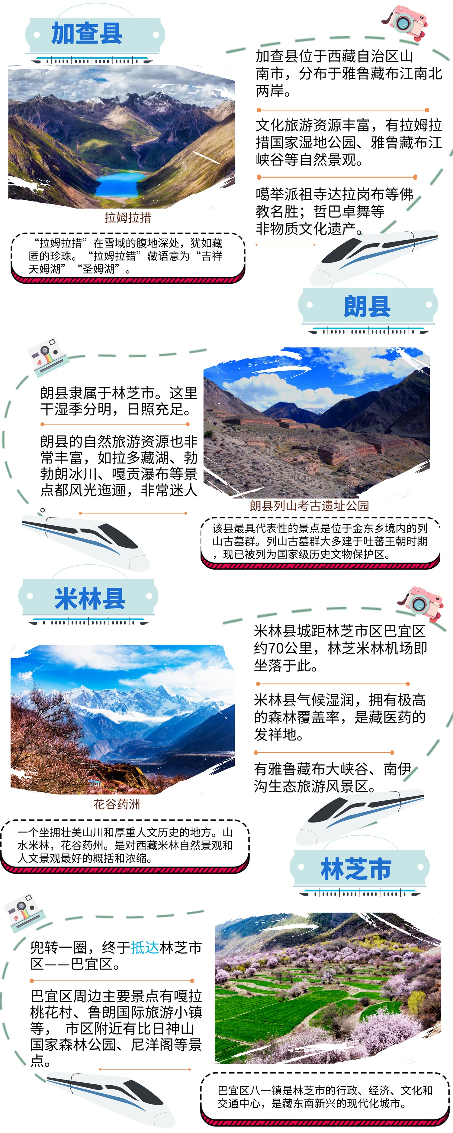 川藏鐵路拉薩至林芝段線路,沿途跨過(guò)雅魯藏布江,向東經(jīng)過(guò)貢嘎、扎囊、桑日、加查、朗縣、米林至林芝,一路都是美景。