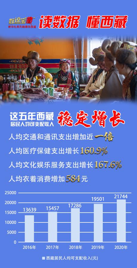 “十三五”期間,在中央和地方一系列政策措施的推動下,西藏居民收入持續(xù)攀升。西藏自治區(qū)政府統(tǒng)計數據顯示,2020年西藏居民人均可支配收入達21744元,較2015年增長77.4%。