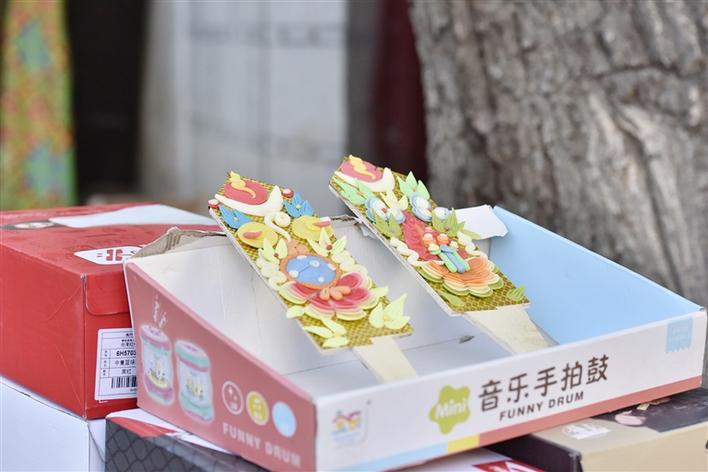 “有沒有和睦四瑞圖案的,給我看看?!薄昂绵?。”店主一邊打開盒子,一邊告訴記者,自己家的酥油花一對賣100元,如果購買者有需要也可接受定制,但要額外收取加工費。