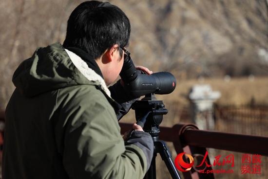 楊樂在拉魯濕地觀測鳥類情況。 李海霞 攝