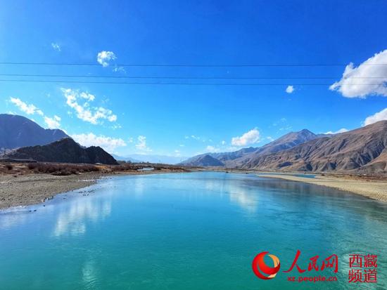 進入枯水期,達孜大橋下的水雖不復(fù)往日奔騰澎湃景象,但水面也有近百米寬。波光粼粼的水面,像一條綠色綢帶,各類水鳥飛舞其上,不知不覺就讓人看迷了?!斑@些水最終要流到濕地里去,你看,多清澈啊?!蹦岈敹嗉袊@。